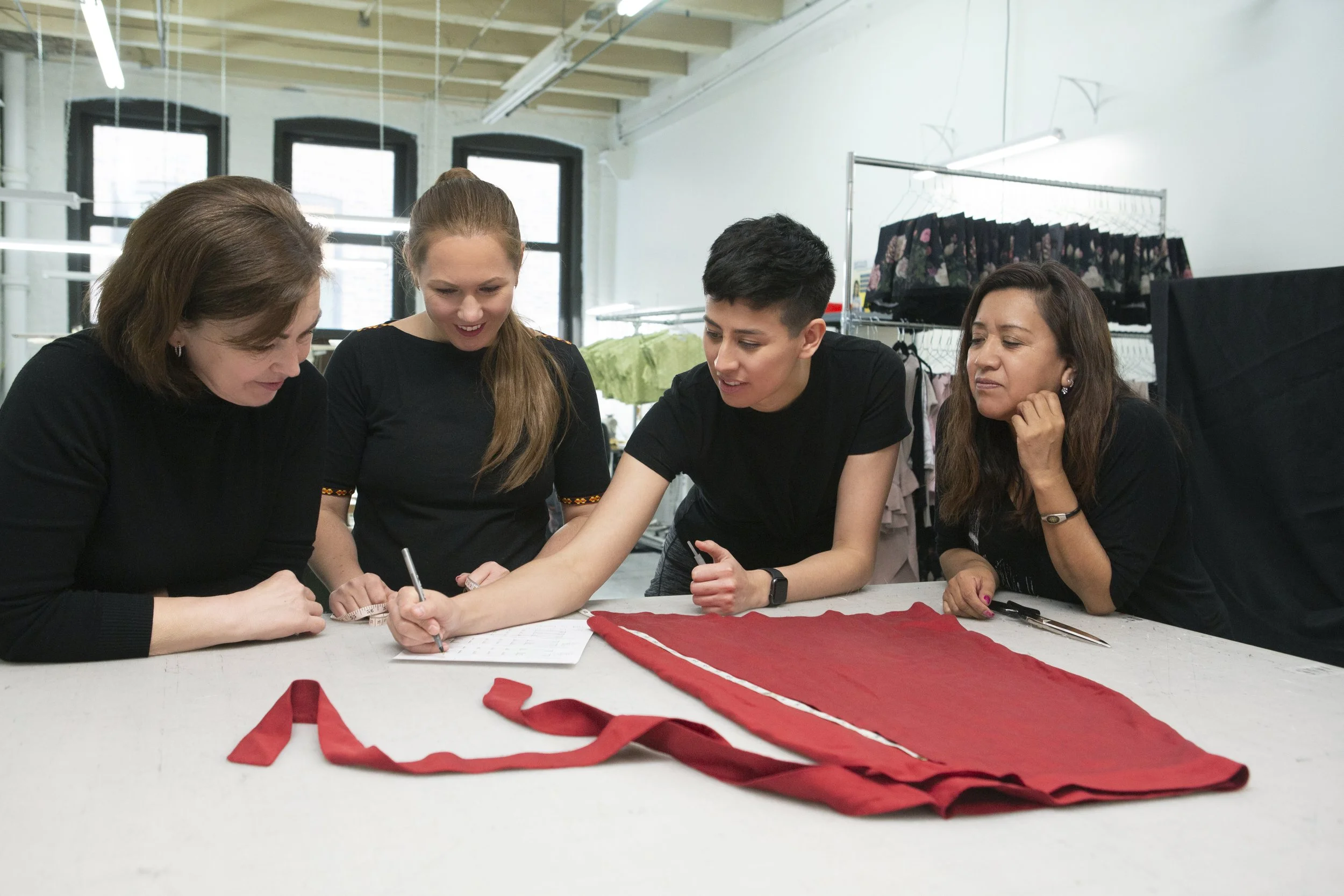 Now that you’ve developed your collection, let’s get it into production! We often hear that full factory production minimums can be intimidating at the start-up level, so we’ve decided to step in. We’re here to help you bridge the gap between sample sewing and factory minimums with an experienced, local team that can keep you moving forward. At our “preferred” 50 piece production MOQ (minimum quantity order), you get our best sewing rate with a multi-piece order, but don’t let this deter you if you need less. We’re happy to come up with an adjusted rate to fit your needs.